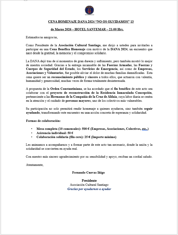 Díptico cena benéfica Dana 2024 «No Olvidamos»